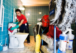 - Cleaning toilets and bathrooms